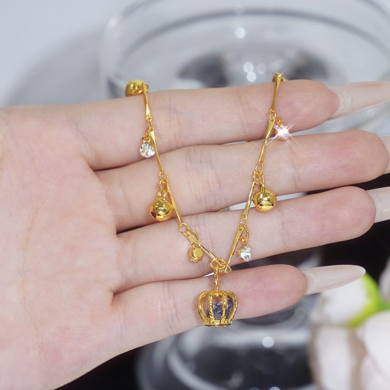 Elegant Design: Features a crown bell charm, adding a touch of goddess-like elegance.