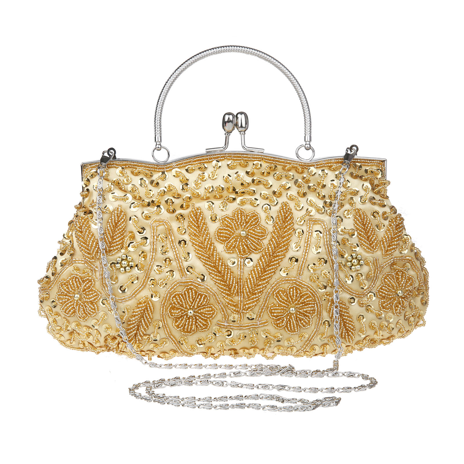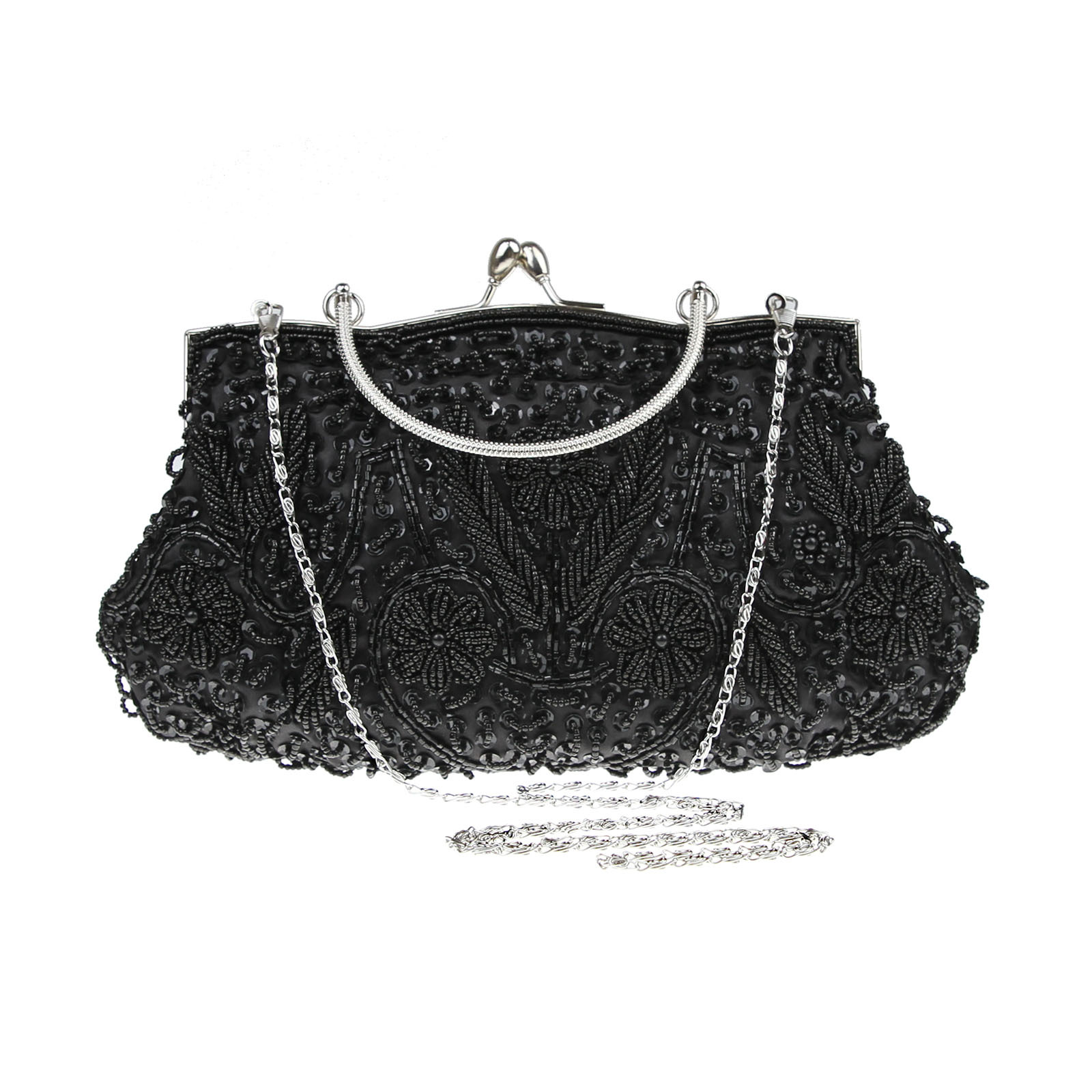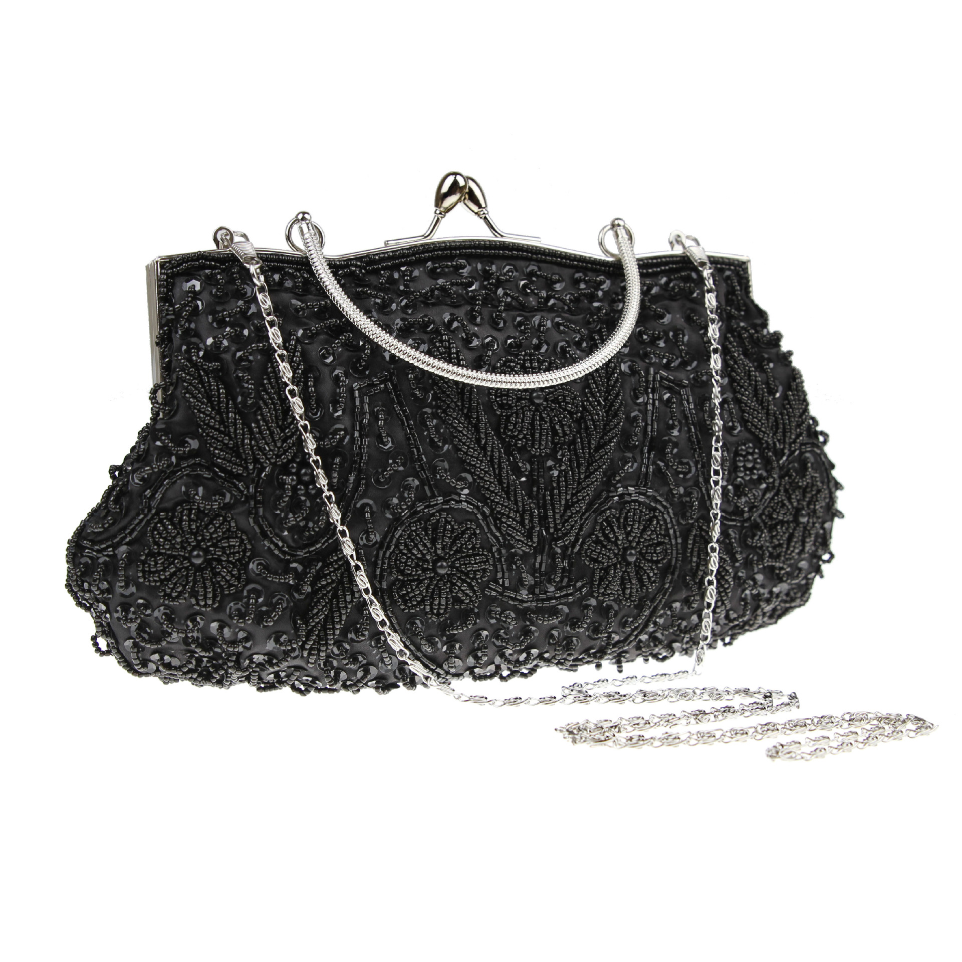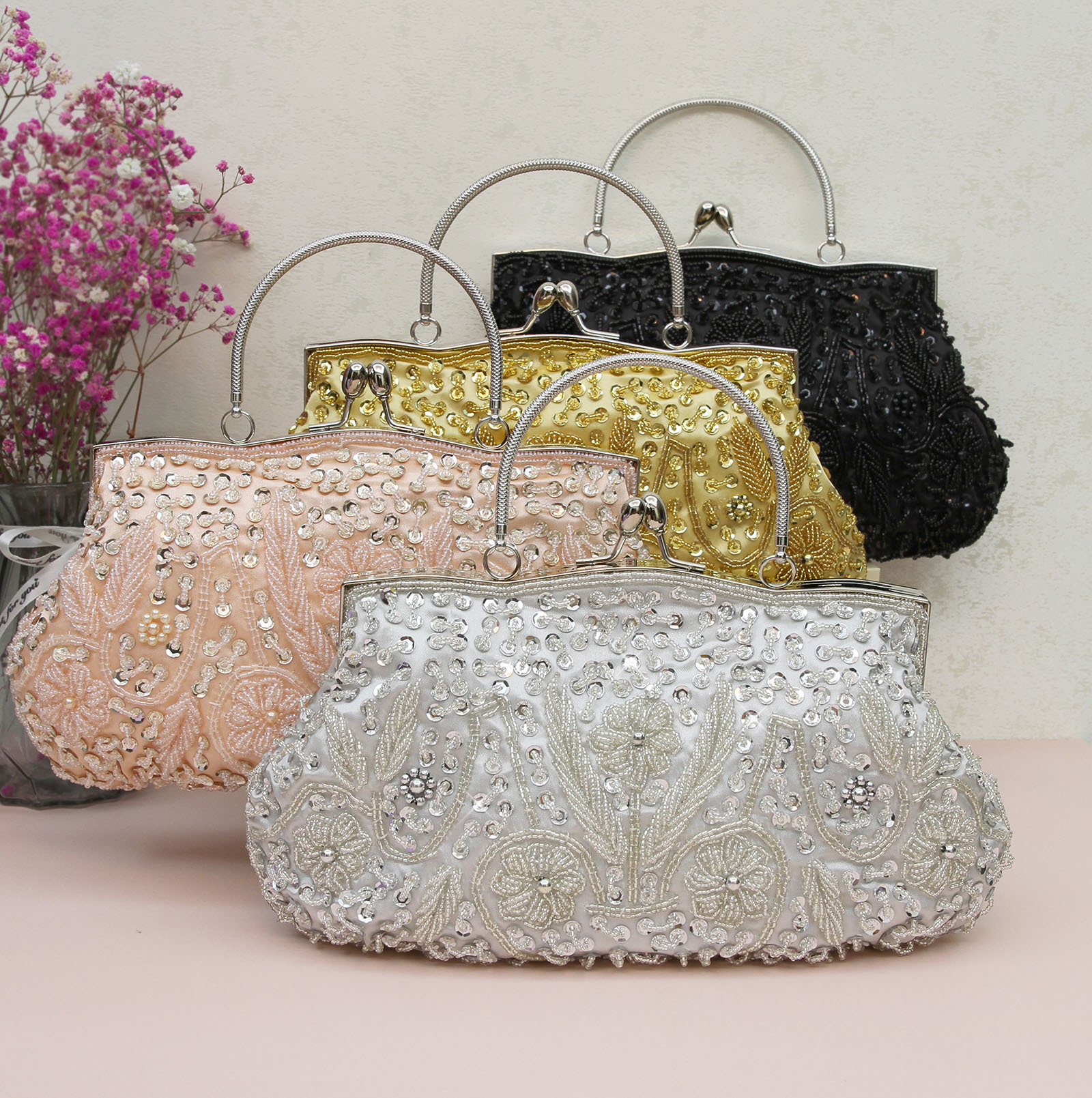 Elegant Design: Chinese retro-style handbag with intricate beadwork, perfect for formal occasions like banquets.