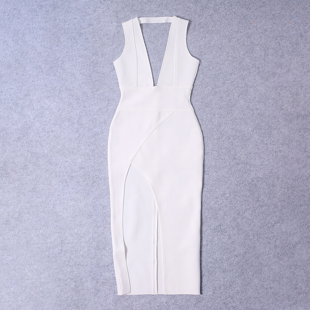 Elegant Design: Deep V-neck and high-slit backless design for a luxurious and sexy look.