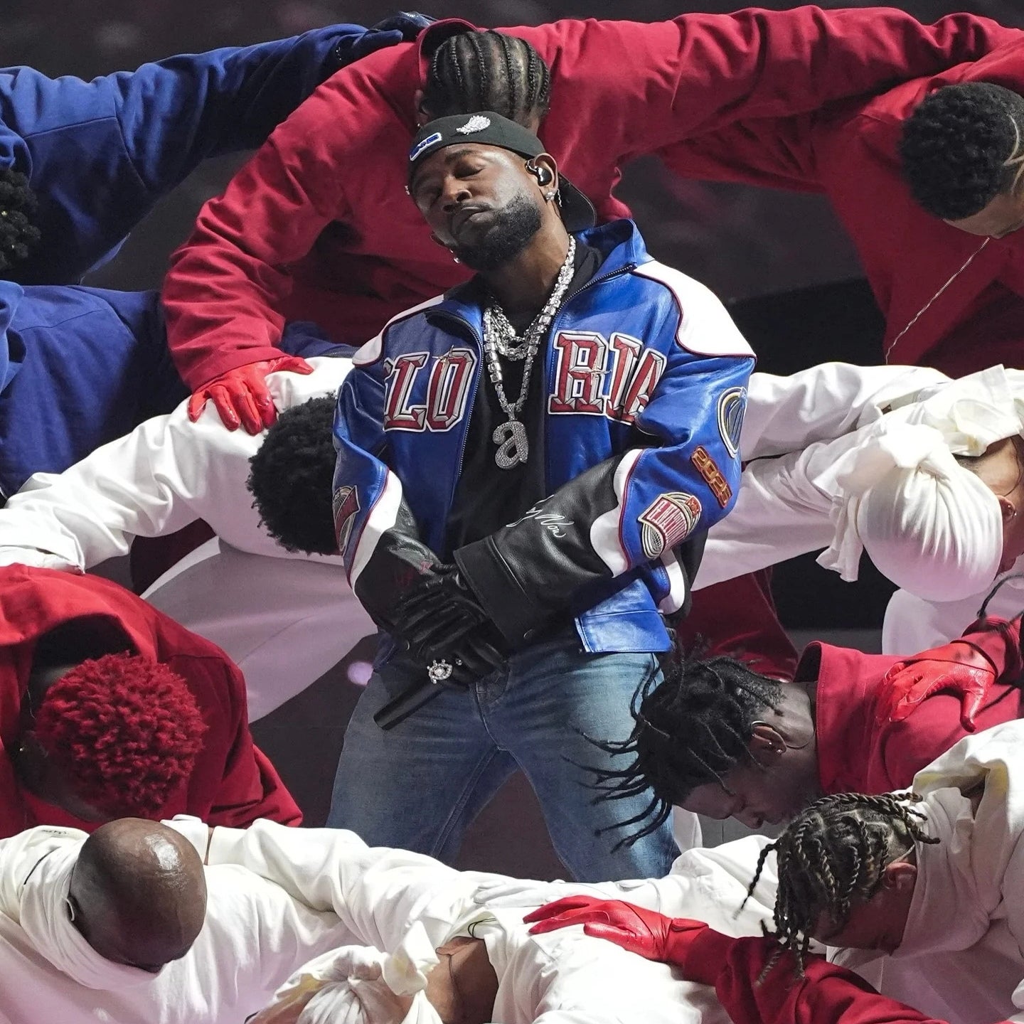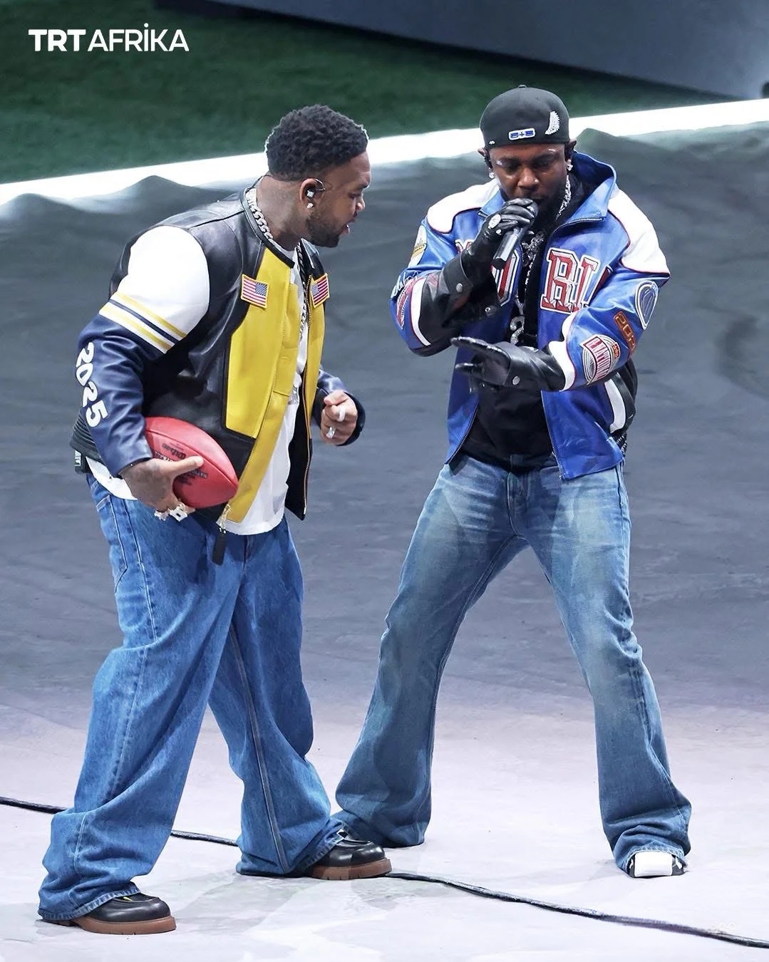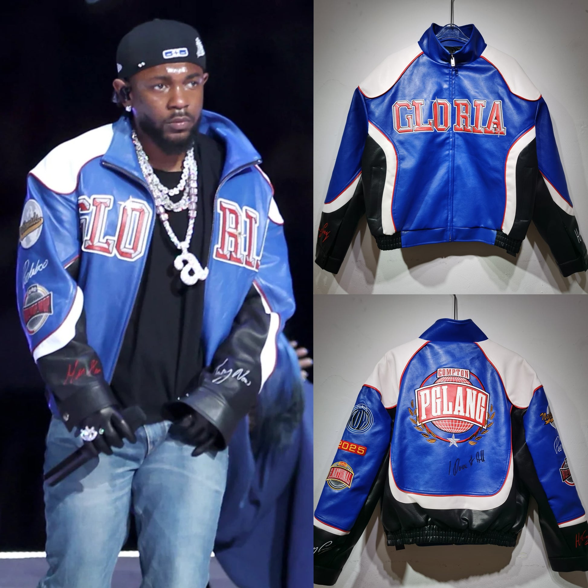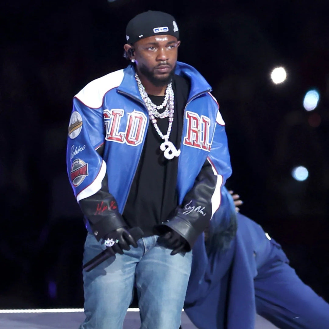 Stylish Design: Inspired by Kendrick Lamar's performance outfit at the 59th Super Bowl, this leather jacket exudes a trendy hip-hop vibe.