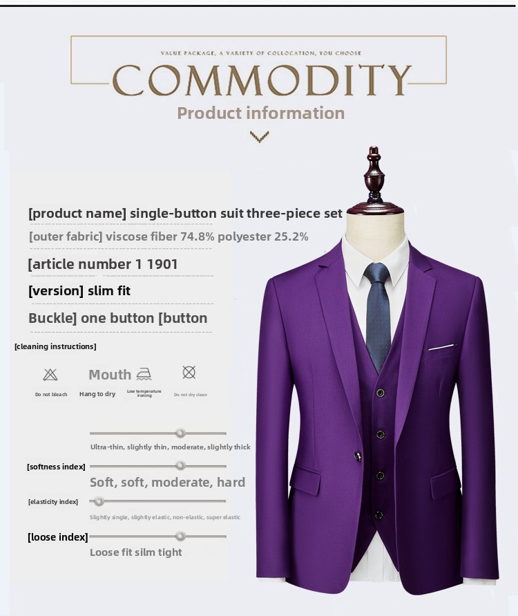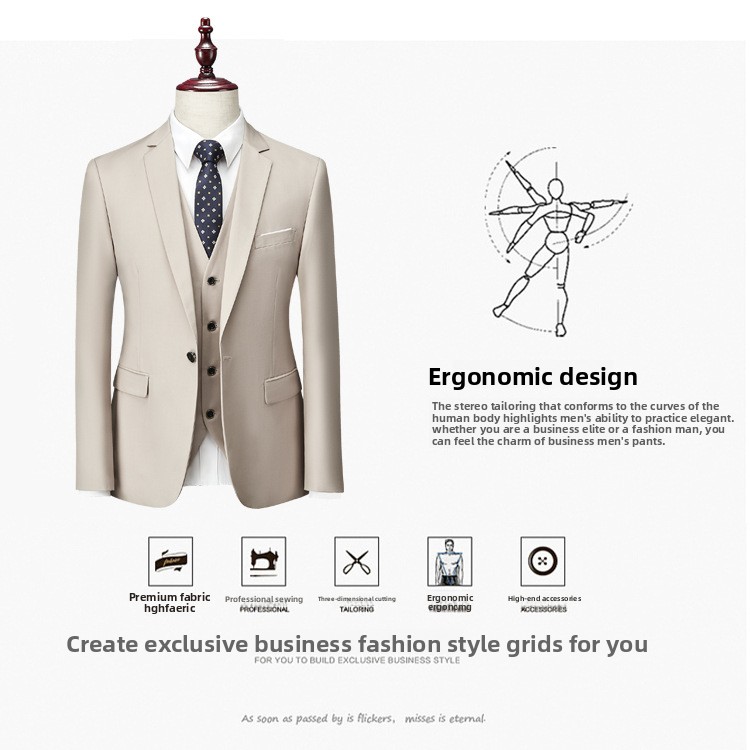 Men's Business Casual Suit Three-Piece Set