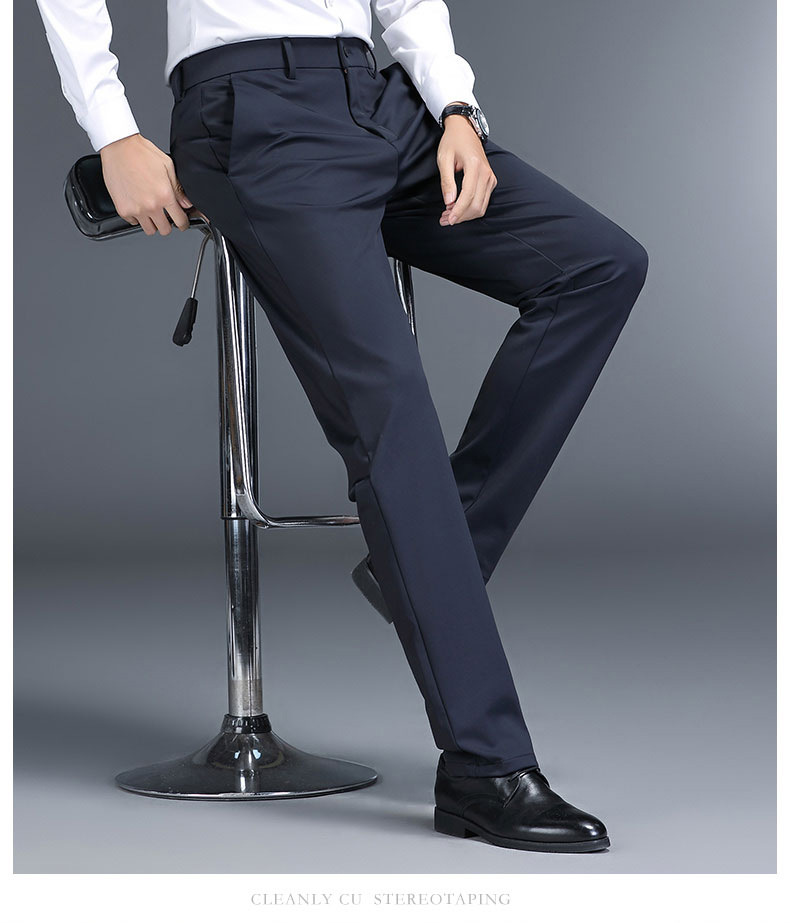 Slim Fit: Straight-leg design offers a tailored, modern look suitable for business and casual occasions.