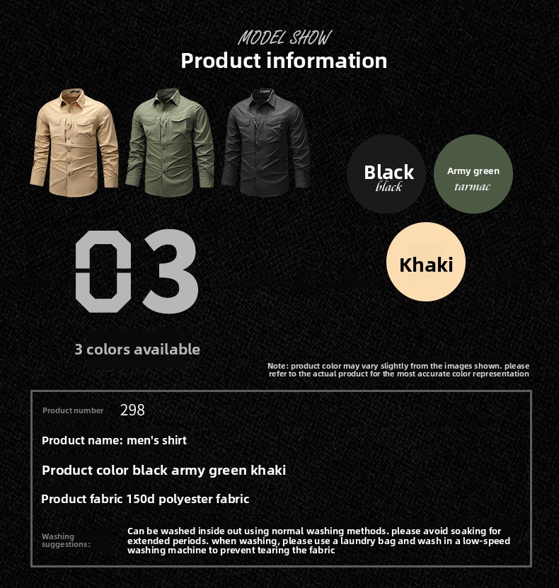 Colors: Khaki, Black, Military green, Dark blue, Grey, Haze blue