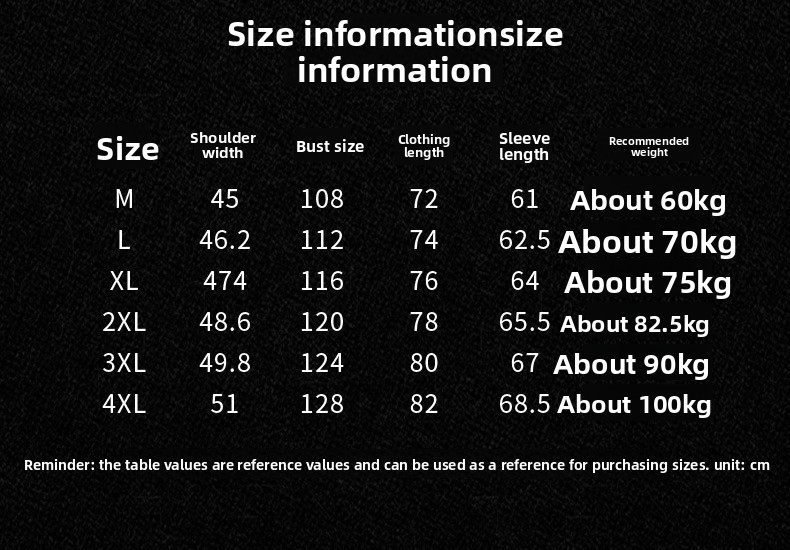 Sizes: M, L, XL, XXL, 3XL, 4XL