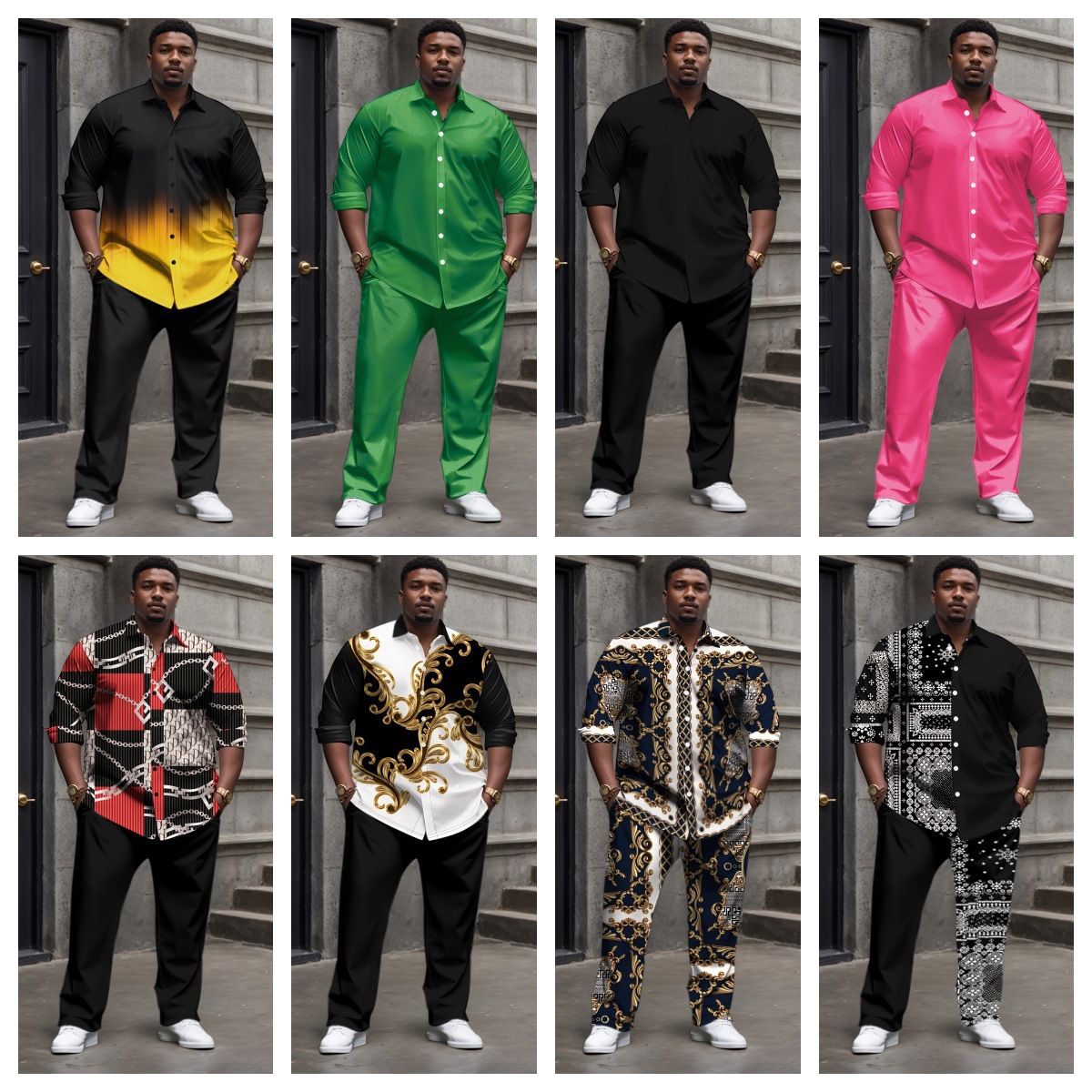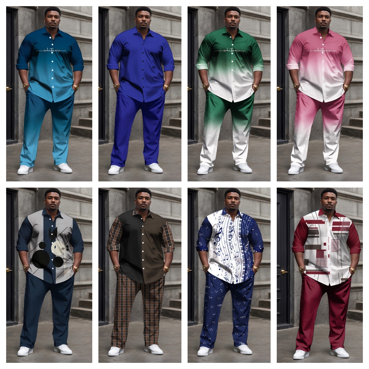 Style: Men's 2-piece casual set, long-sleeve single-breasted shirt + pants, 3D print, spring & autumn style
