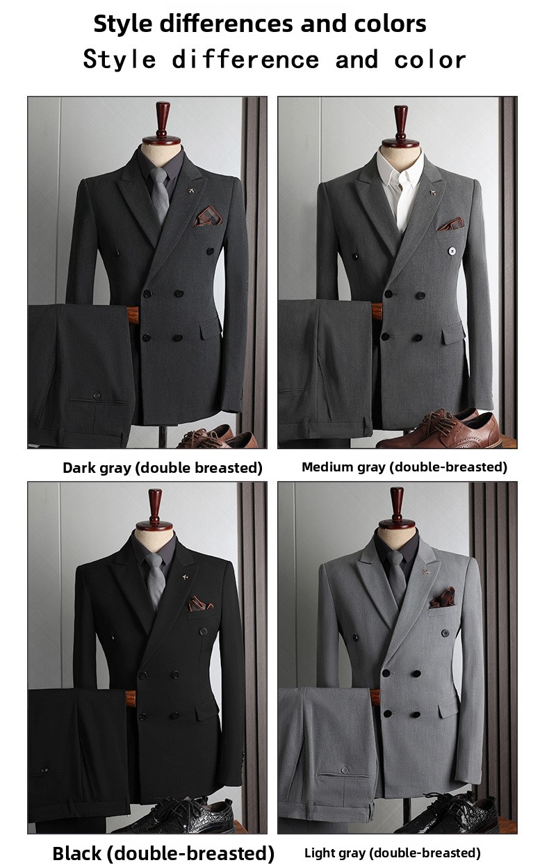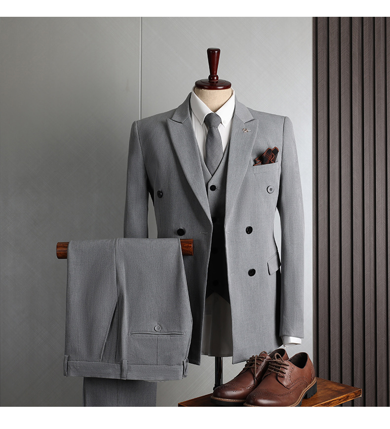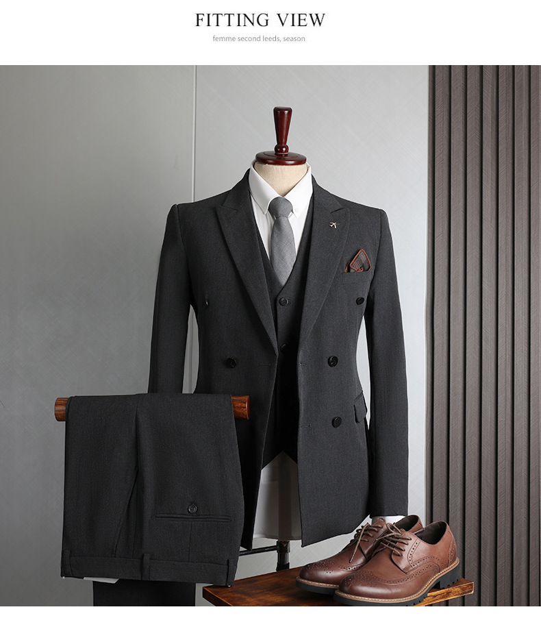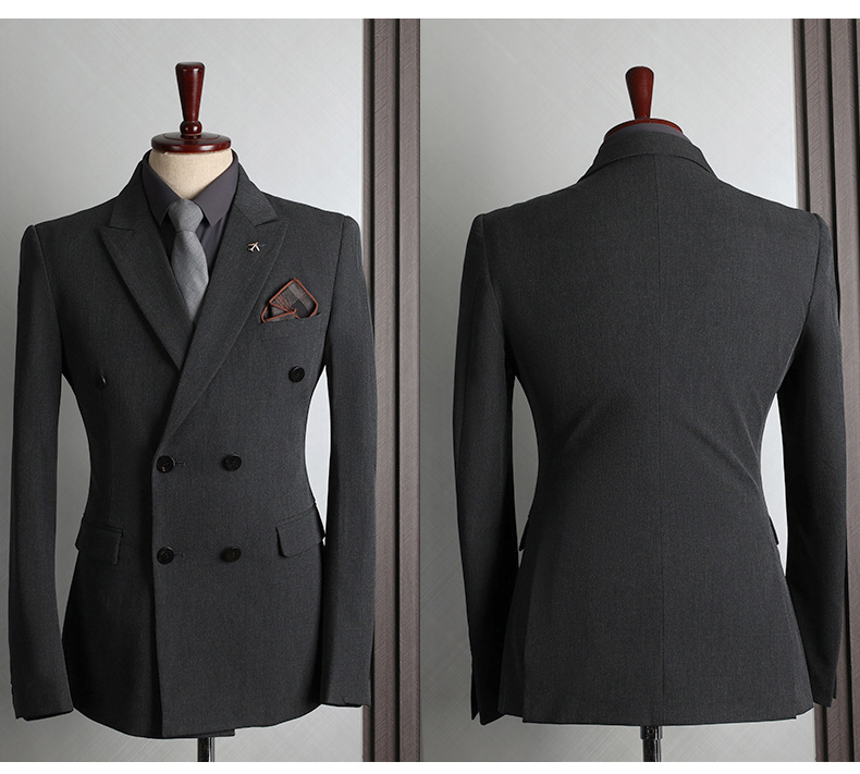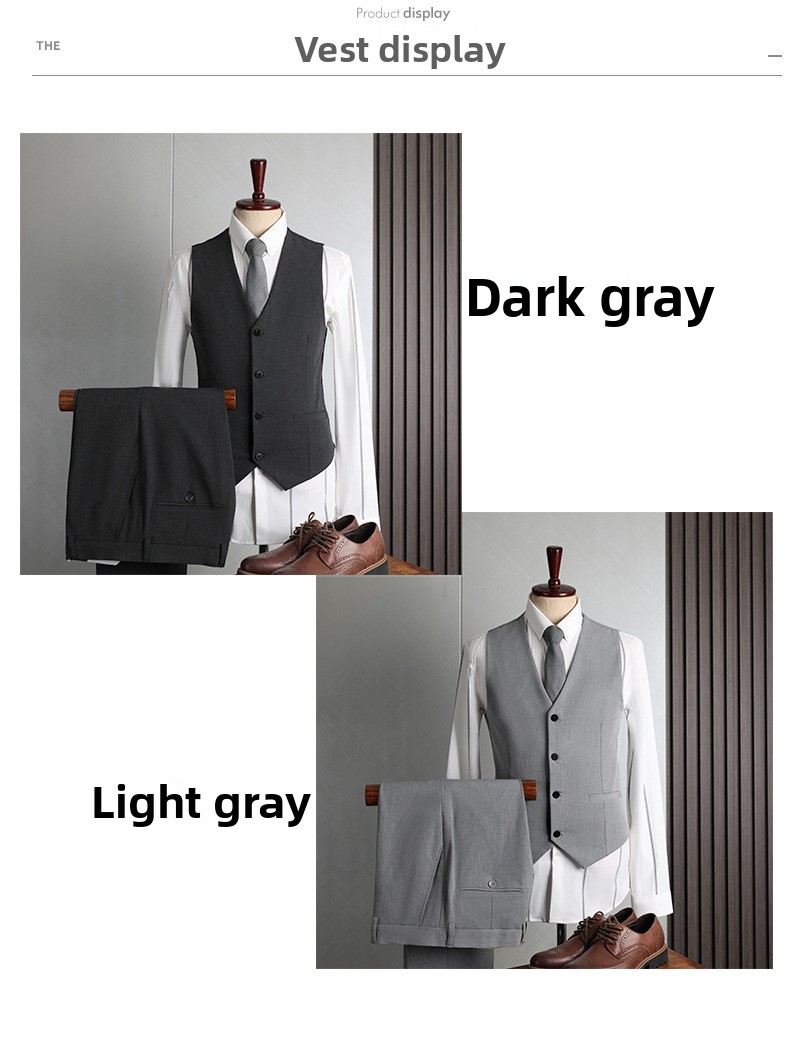 Colors: Light gray, dark gray, apricot, medium gray, navy blue, black (options include coat + pants or coat + vest + pants).