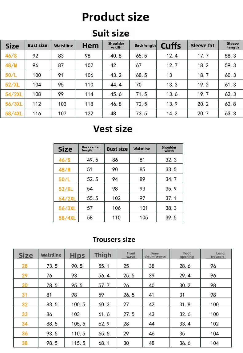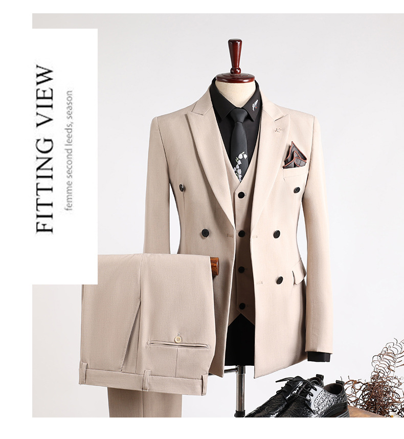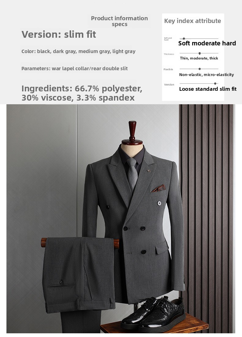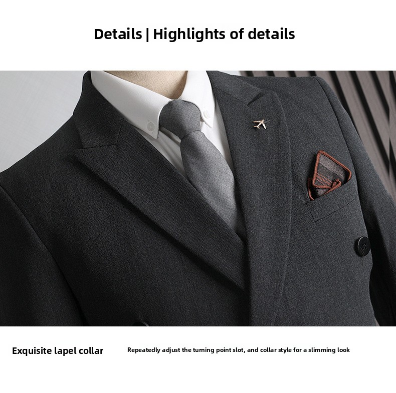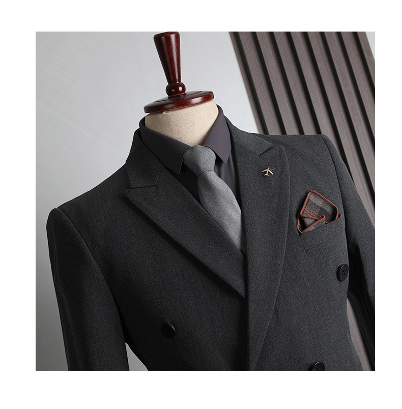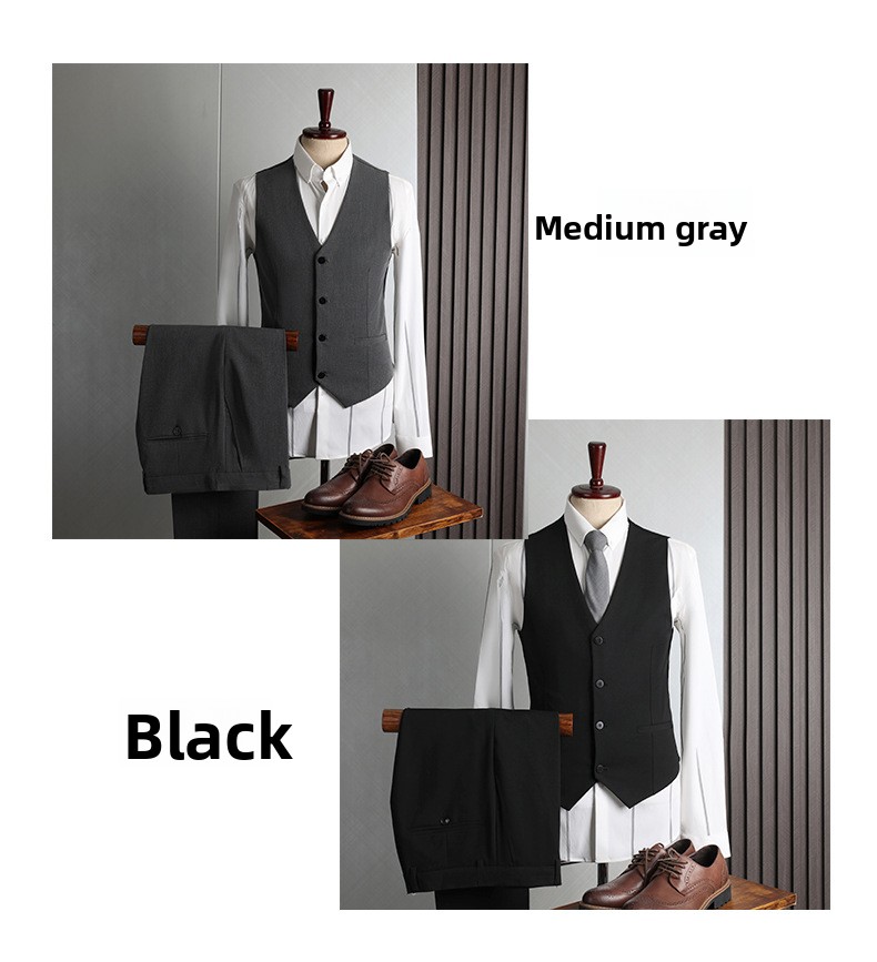 Colors: Light gray, dark gray, apricot, medium gray, navy blue, black (options include coat + pants or coat + vest + pants).