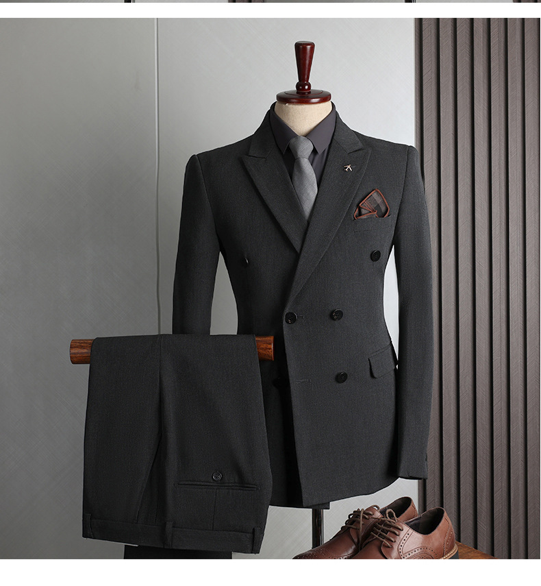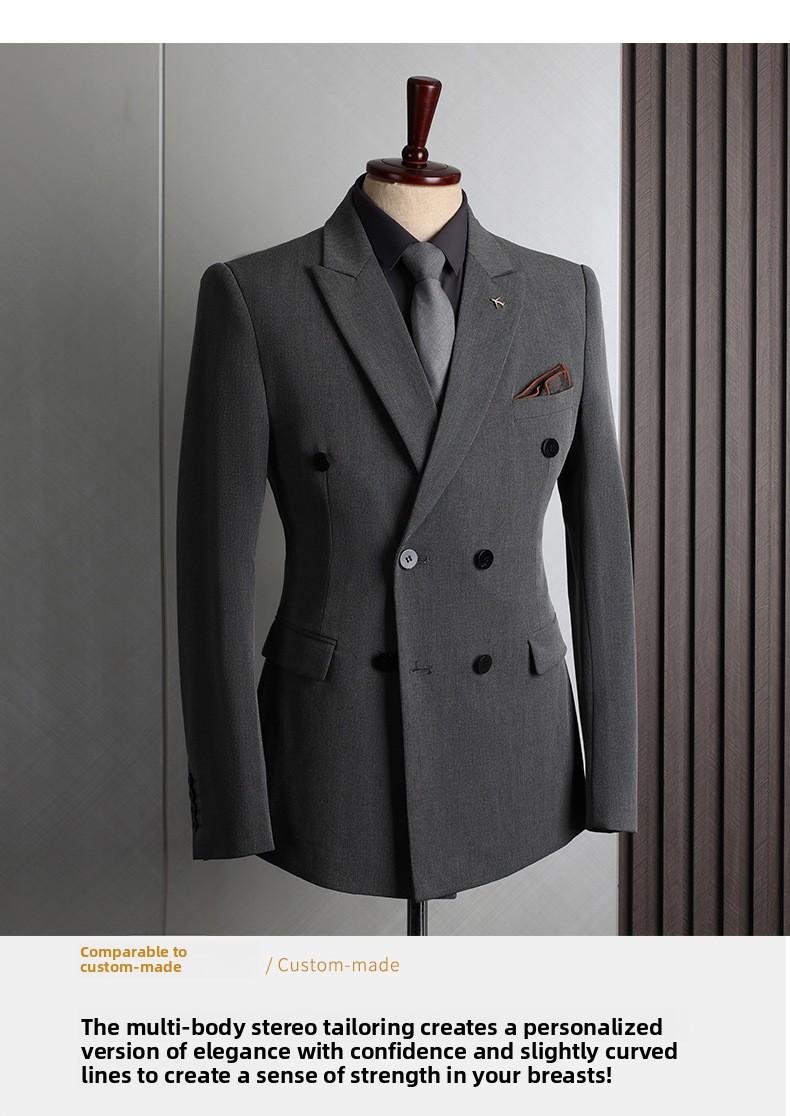 Double-breasted Design: Classic British-style double-breasted suit for a sophisticated look.