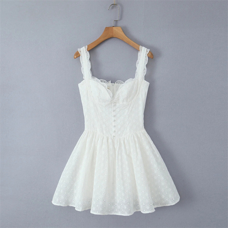 Sweet Lace Design: Features delicate lace embroidery for a charming and elegant look.